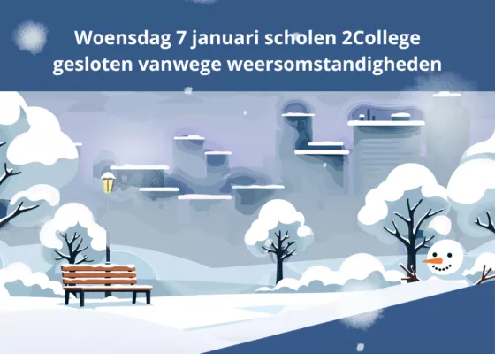 Door de sneeuwval, wind en gladheid heeft de kerndirectie van 2College besloten de reguliere lessen op de vestigingen van 2College op woensdag 7 januari te laten vervallen.