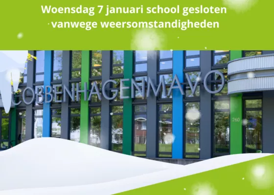Door de sneeuwval, wind en gladheid hebben we besloten om onze school op woensdag 7 januari volledig te sluiten. Eindexamenleerlingen die vragen willen stellen over toetsstof kunnen deze via Teams wel stellen aan hun vakdocent.