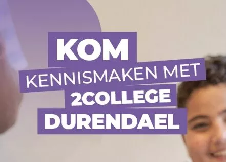 Op 2College Durendael kun je leren op een manier die bij jou past! Ben je een doener of heb je interesse in talen? Leer je graag in de praktijk of duik je liever in de theorie? Ga je graag op Expeditie? Hou je van onderzoeken? Werk je graag op de laptop of liever met boeken? Vind je het fijn om samen te werken of kies je liever je eigen weg? Dan ben je bij ons aan het juiste adres.