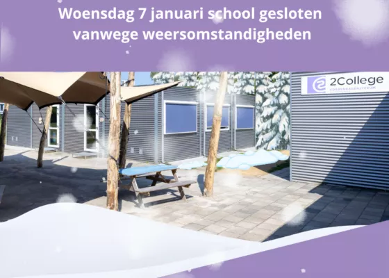 Door de sneeuwval, wind en gladheid hebben we besloten de school op 7 januari dicht te houden voor het reguliere lesprogramma. Leerlingen die op school willen studeren, zijn welkom tussen 10.00 en 14.00 uur.